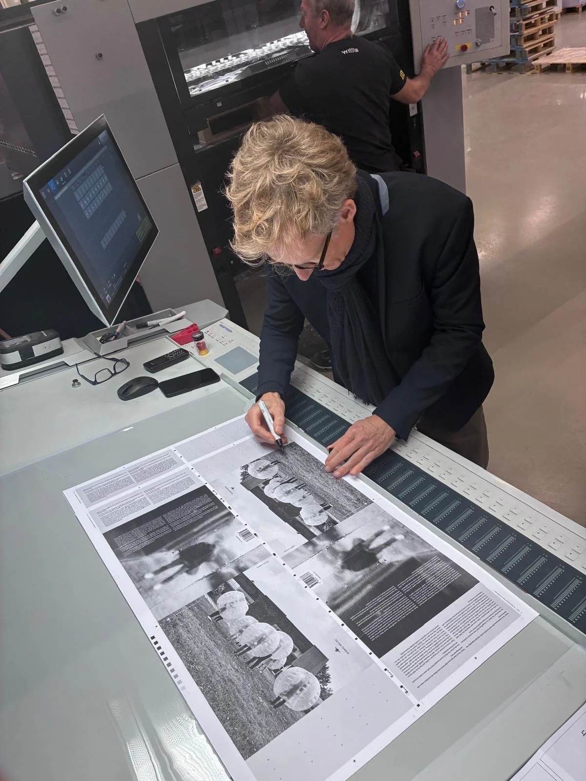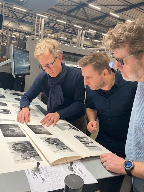 At the press at Wilco Art Books in Amersfoort, last look at You Have Seen Too Much with designer Tim Bisschop and production manager at publishing House The Busy Bee Rutger Wilmink, my partners in crime.